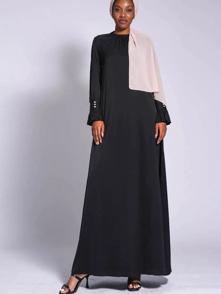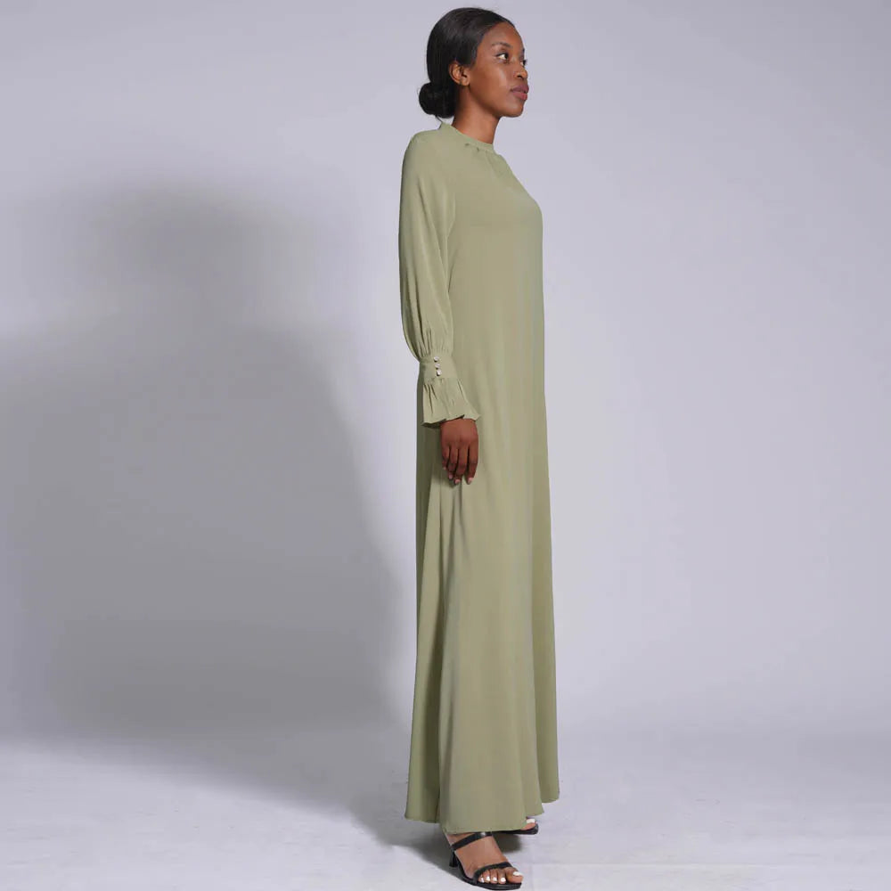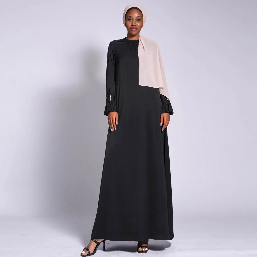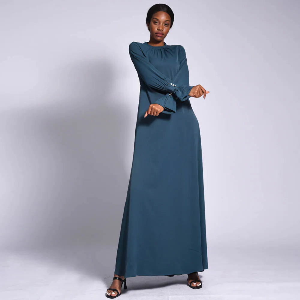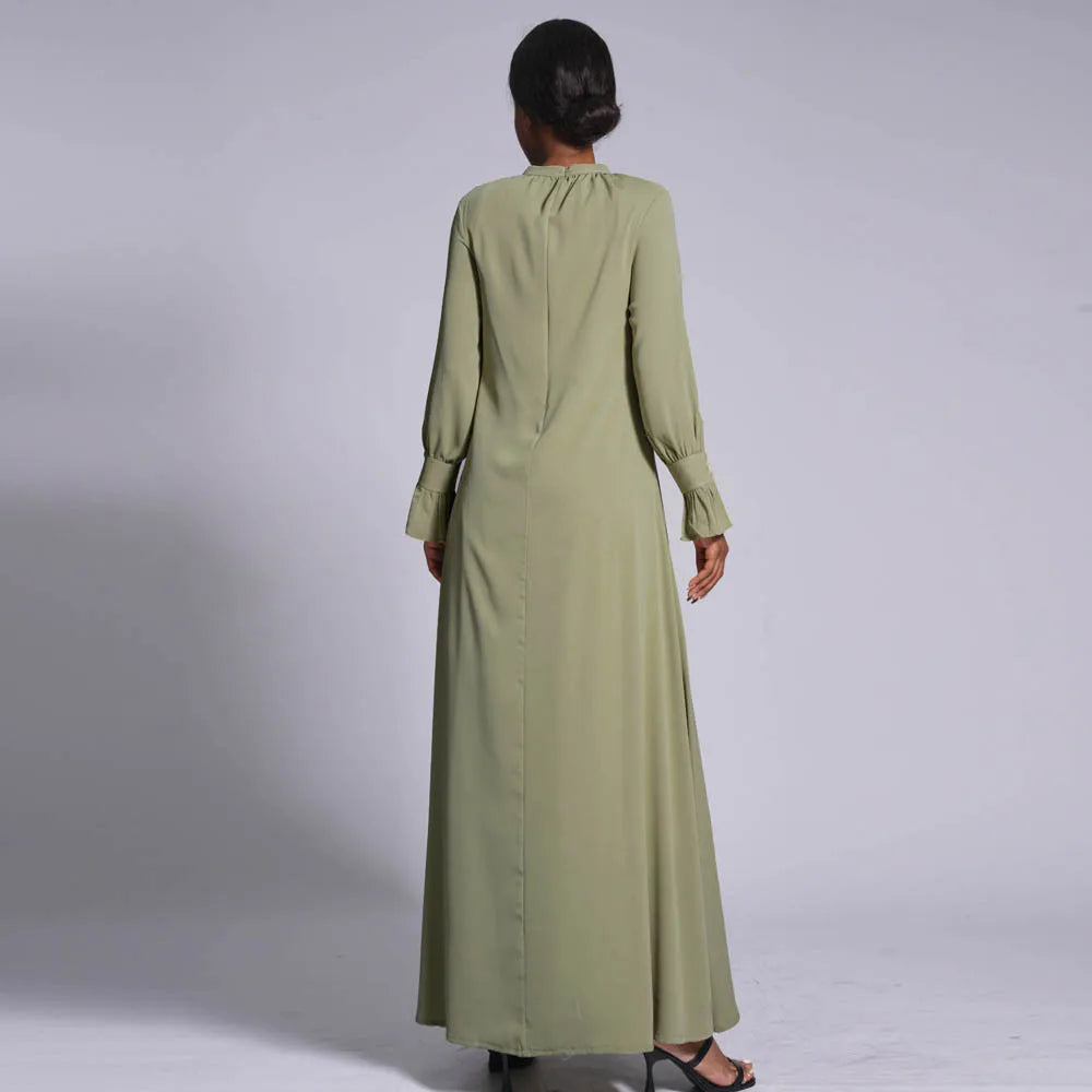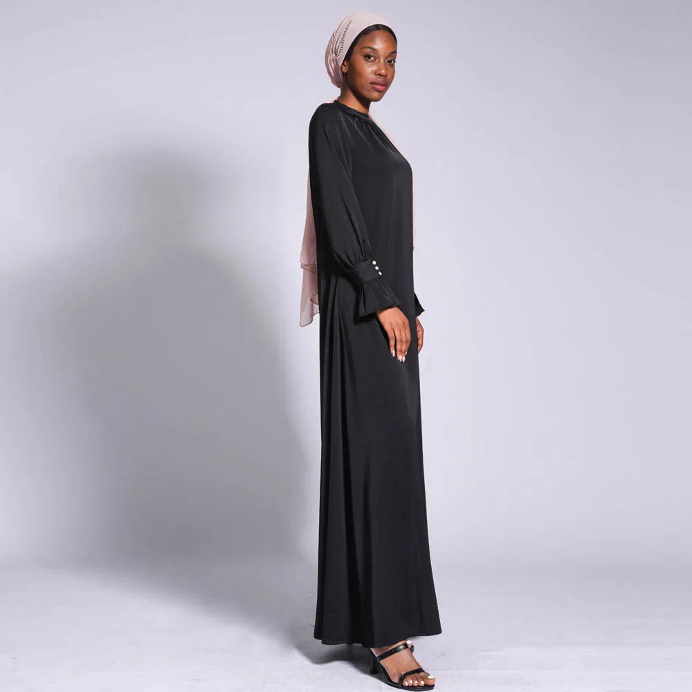 Elevate your modest fashion with this elegant high-neck Abaya maxi dress. Crafted from lightweight, breathable polyester, it offers a graceful flow and comfortable wear for any occasion. The full-length silhouette and high neckline deliver timeless sophistication, perfect for both casual outings and special gatherings.
