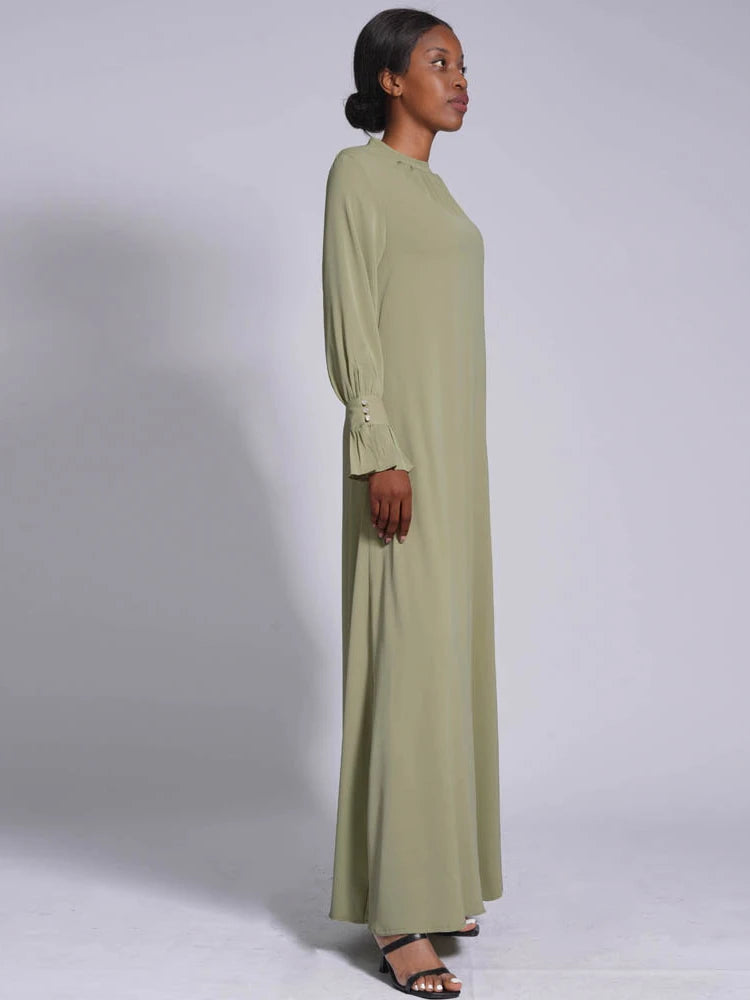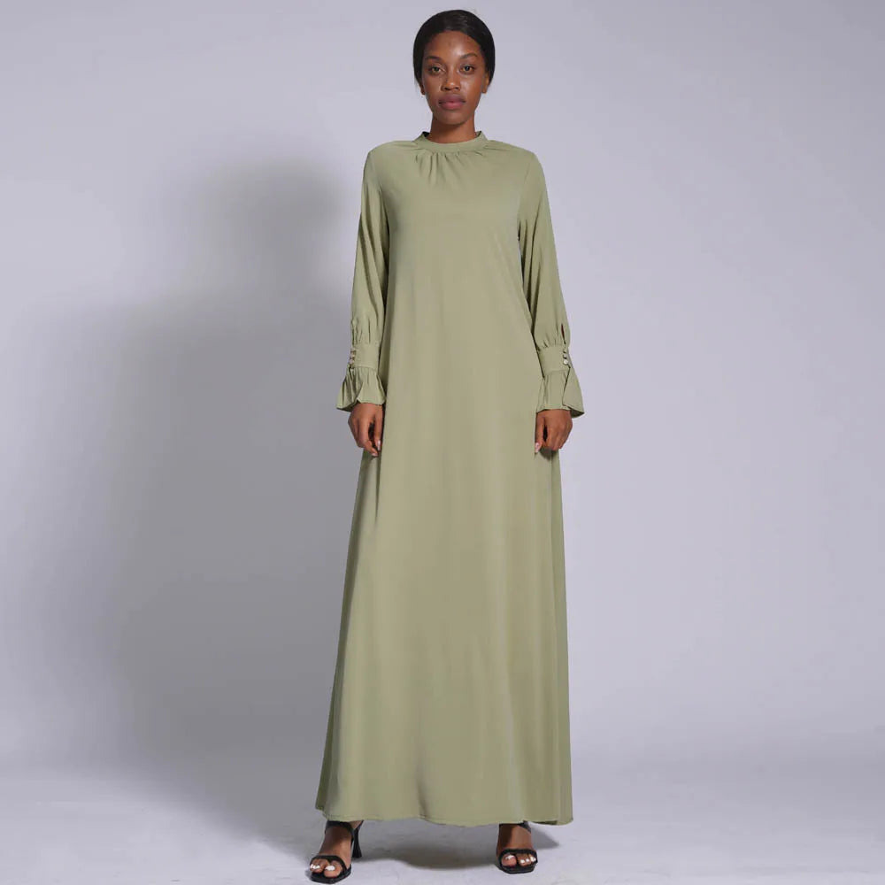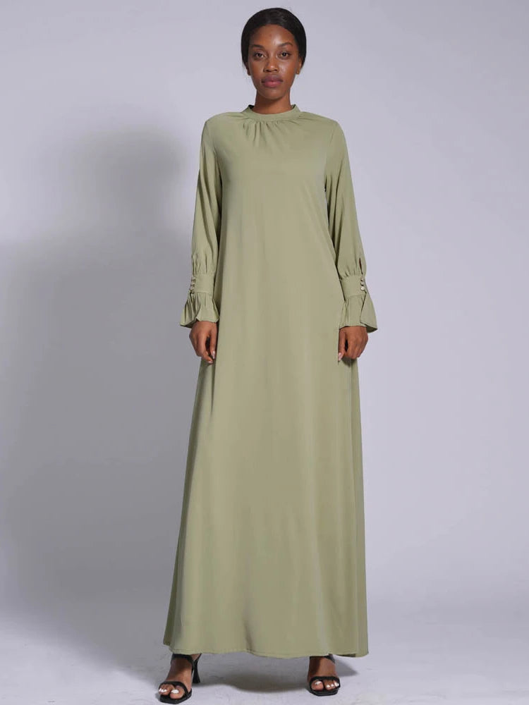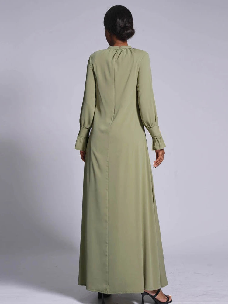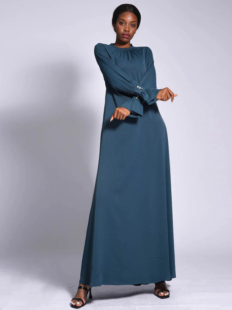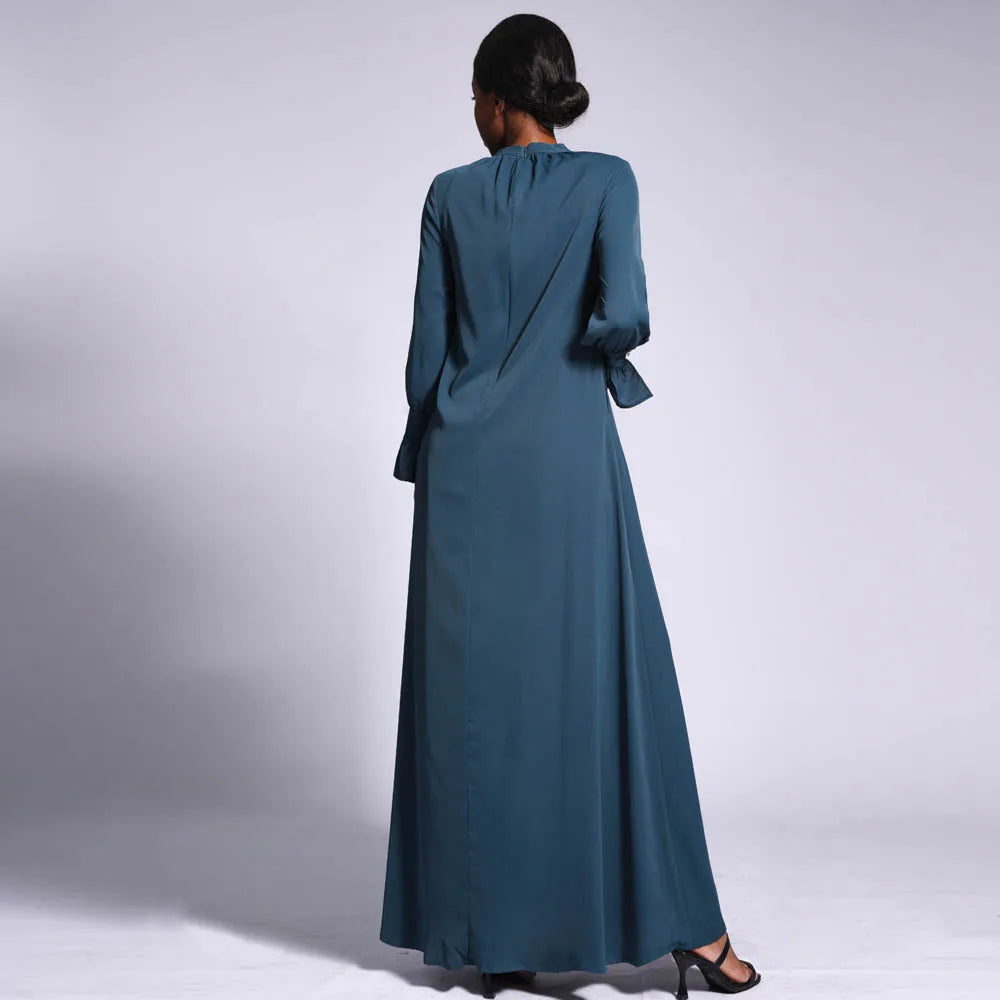 Elevate your modest fashion with this elegant high-neck Abaya maxi dress. Crafted from lightweight, breathable polyester, it offers a graceful flow and comfortable wear for any occasion. The full-length silhouette and high neckline deliver timeless sophistication, perfect for both casual outings and special gatherings.