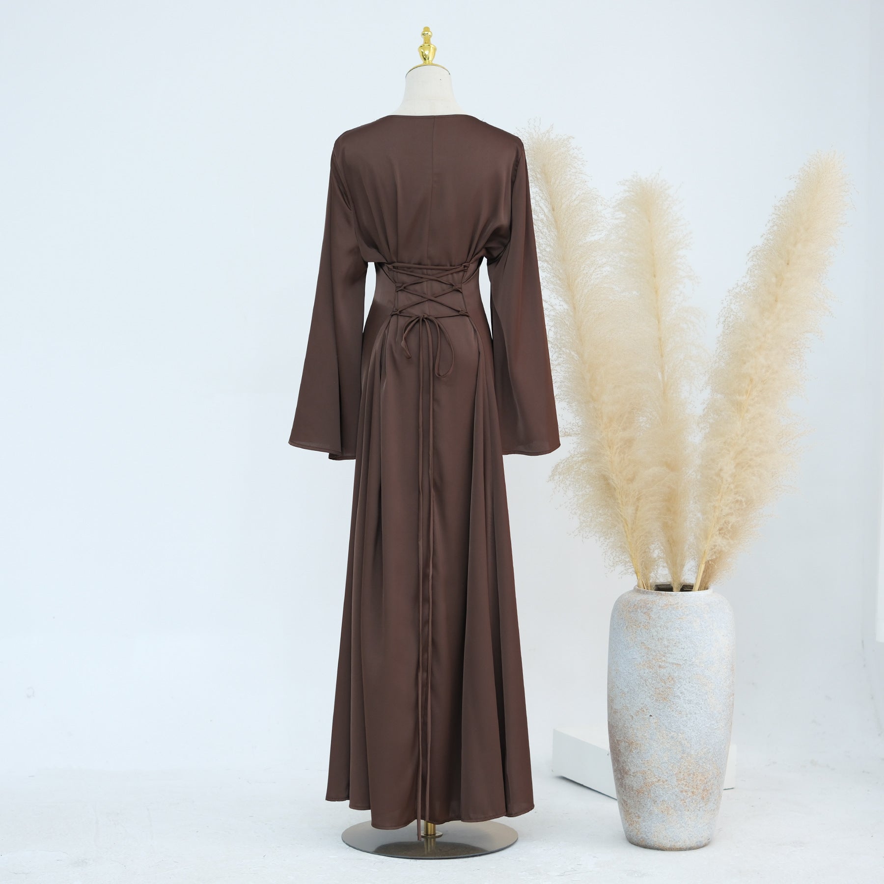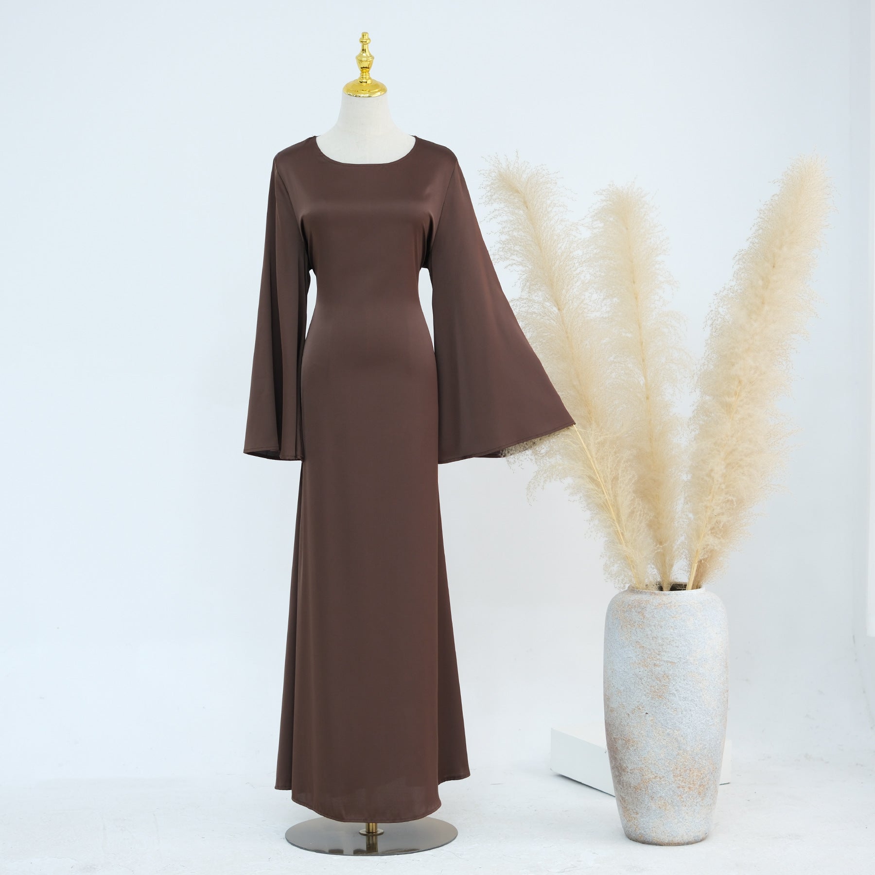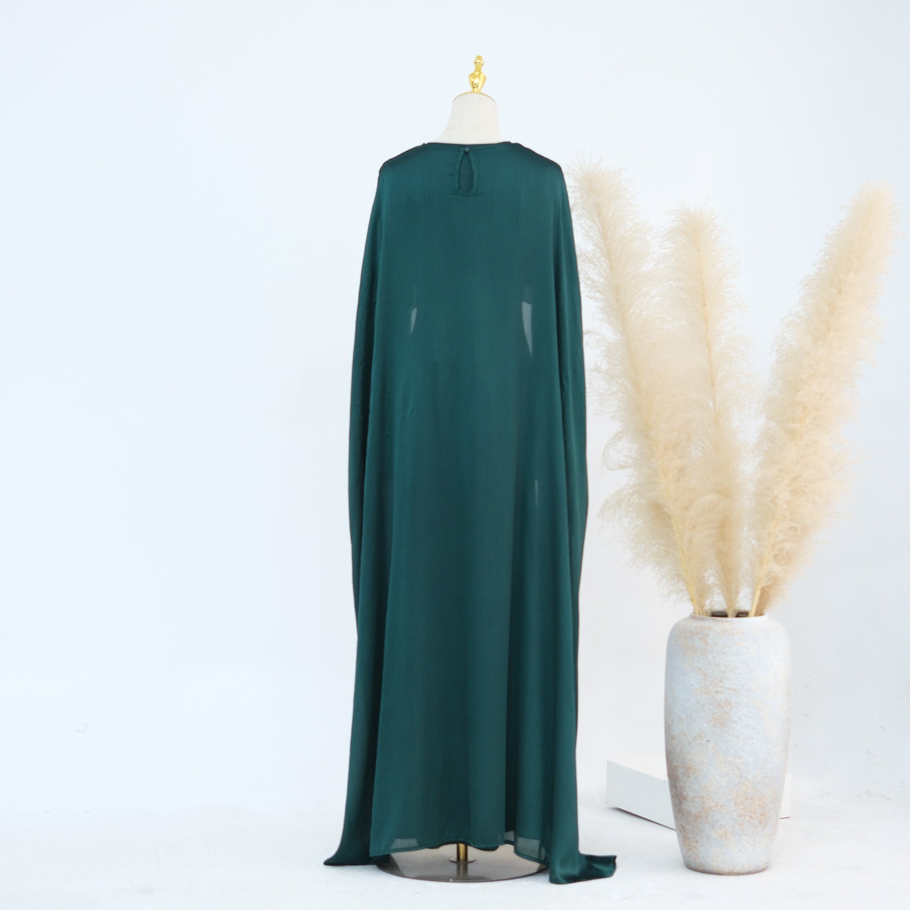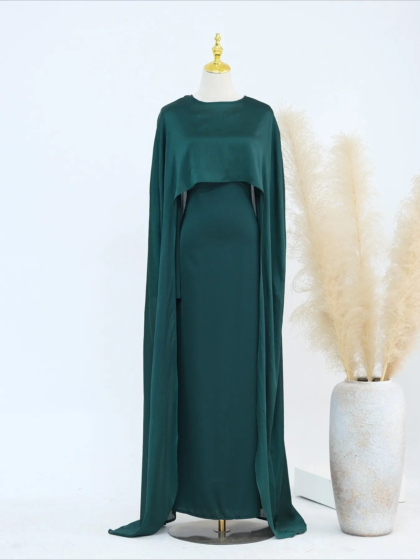 ✔️ Two-piece set: fitted inner dress + long cape-style robe
