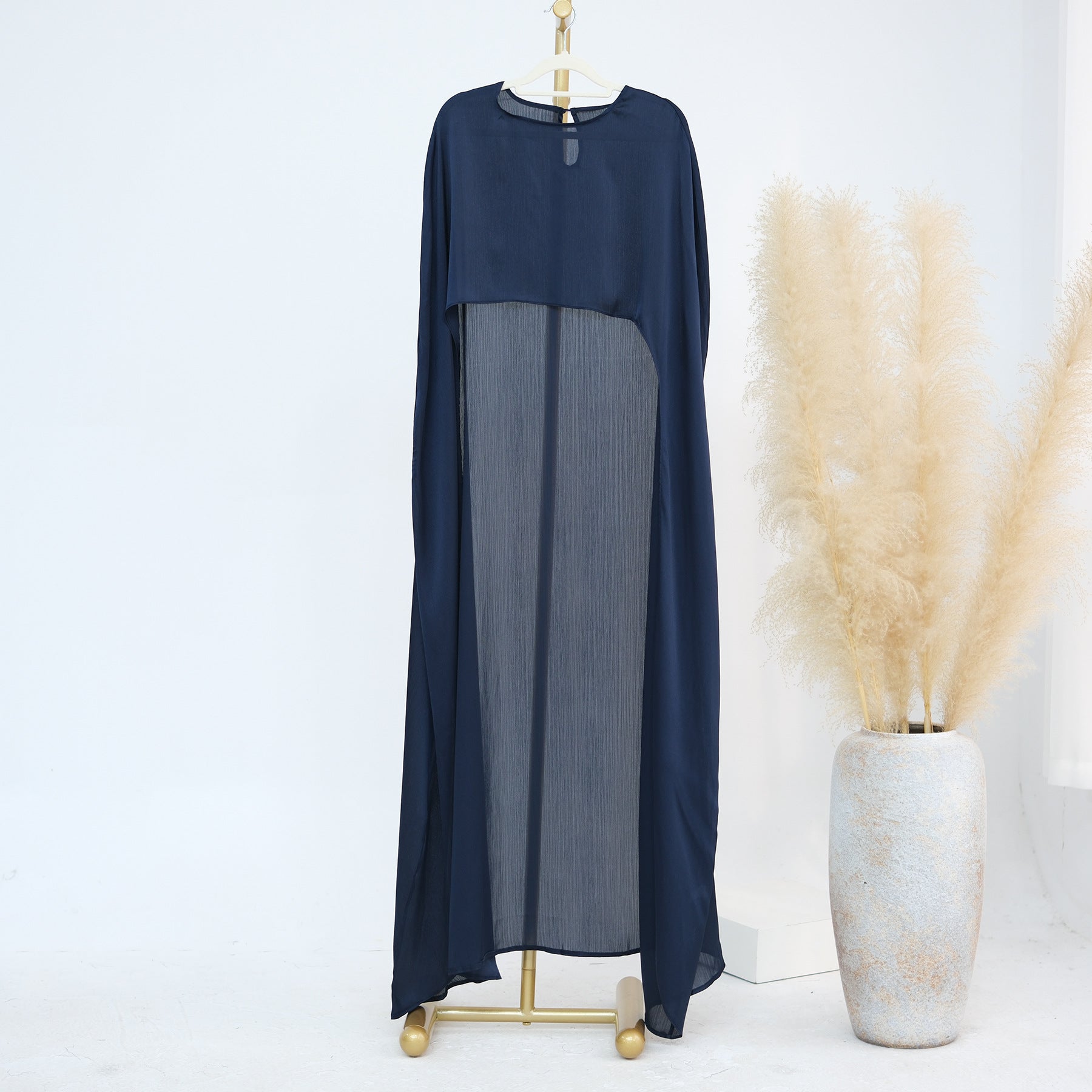 Step into effortless elegance with our 2-Piece Abaya Set, featuring a slim-fit inner dress paired with a flowing long robe cape for added grace and coverage. Crafted from soft, slightly stretchy polyester, this ensemble offers a refined silhouette while maintaining comfort and modesty.