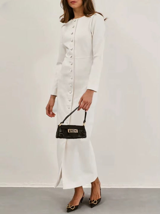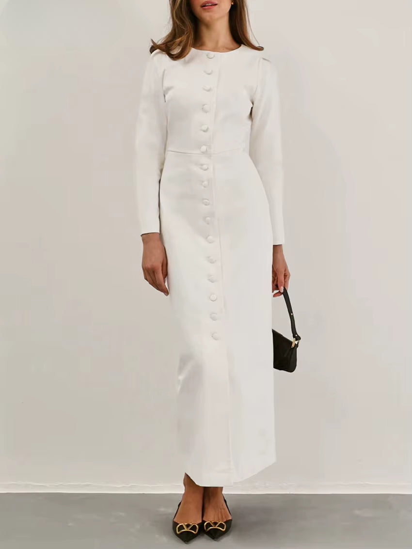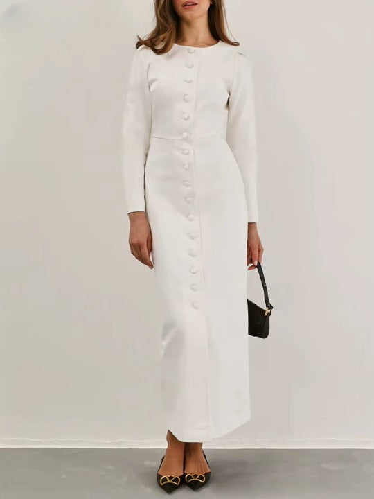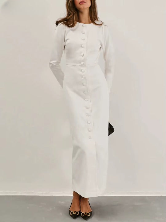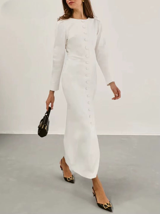 Loose White Bodycon Long Sleeve Ankle-Length Dress
