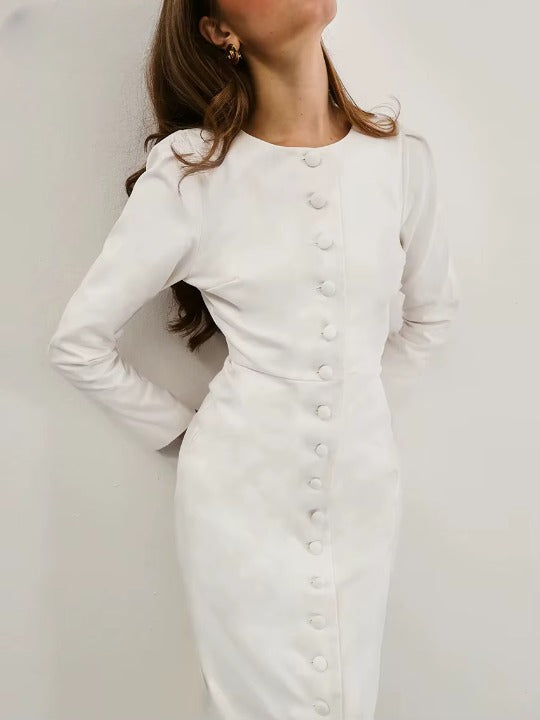 Make a statement with this Loose White Bodycon Long Sleeve Dress—a versatile, elegant piece that transitions seamlessly from day to night.