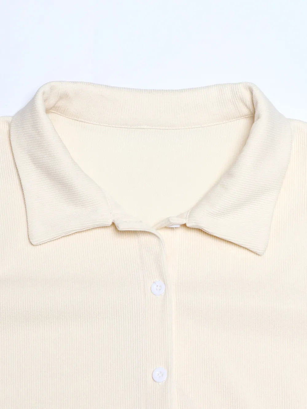 Collared Neck Long Sleeve Top and Drawstring Pants Set