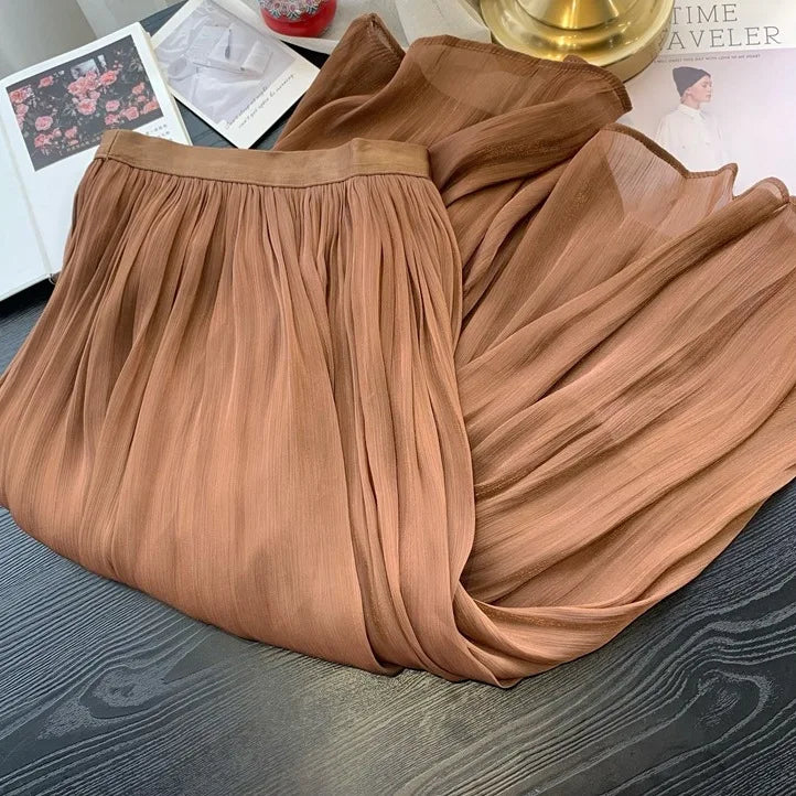 Embrace effortless style with this A-line skirt featuring delicate mesh ruffles. Designed for comfort and ease, this ankle-length dress offers a loose fit with a slight stretch, perfect for casual outings or relaxed gatherings. The solid pattern and A-line silhouette give it a timeless, flattering shape that flows beautifully with your movement.